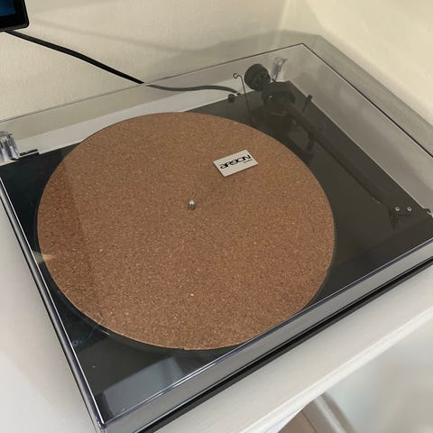 Argon pladespiller til afspilning af vinylplader. Enheden har en beskyttende transparent dæksel og en manuel tonearm. Designet til brug med standard vinylplader.