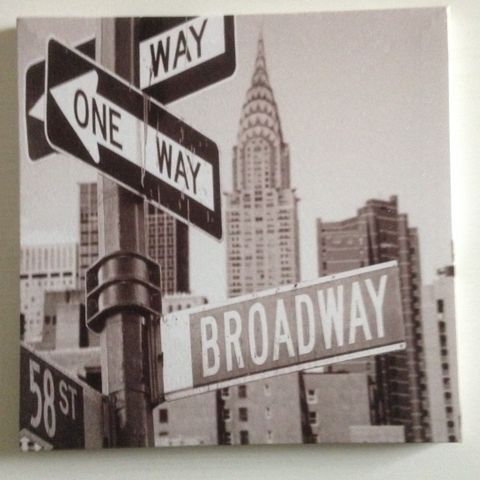 Coop Broadway lærredsbilleder sæt bestående af 2 stk. Motiverne viser bymiljø med Broadway skilte og trafiklys. Billederne er trykt på lærred og spændt op på træramme. Velegnet til vægophæng i bolig eller kontormiljø.