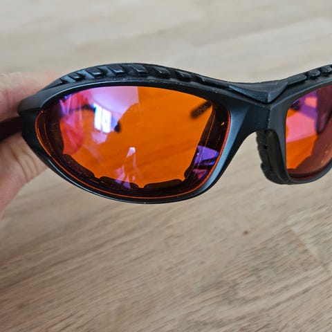 Der er 4 sikkerhedsbriller i alt. Det ene par er brugt en enkelt gang. De andre 3 er fortsat i pose. Den ene pose har været åbnet for billeder.