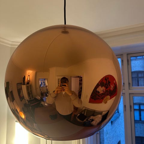Tom Dixon kobber pendel med en diameter på 45 cm. Er købt i Tom Dixons butik i Antwerpen, Belgien, for 12 år siden, er i god stand men har tydelig brugsspor - se billeder, sælger derfor billigt. Man ser ikke brugsspor med mindre man søger, grundet lampens flotte kobber finish.