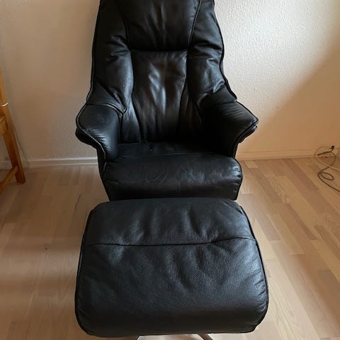 Læder lænestol med skammel
