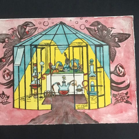 Værk af Mie Mørkeberg (født 1980). Litografi i farver, signeret af kunstner og nummeret. Måler 40 x 30 cm.