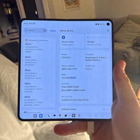 OnePlus Open smartphone med 512 GB lagerplads. Enheden leveres med original emballage og tilbehør. En god foldphone som kan en masse, som en mini tablet. Der er originale skærme beskytter på før skærme og store skærme siden den blev købt, ingen ridser og fejler intet. Battery holder godt, den er brugt kun få gange. Sendes ikke og ikke bytte handle.
