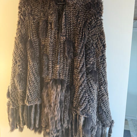 Pelsen ved jeg ikke hvilket dyr er. Der er tale om en oversize løs poncho til at se smart ud i, selvom den åbentbart er størrelse medium. Den er mindre praktisk selvsagt.