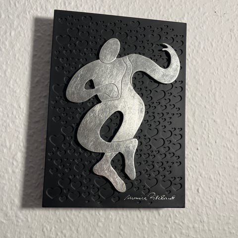 Smukt relief af Monica Ritterband. Det hedder Forføreren. Det er tungt og gedigent. Mål: 25,7 x 18,5 x 3 cm. Nyprisen var næsten kr 1000,- Det sælges nu til kr 595,-