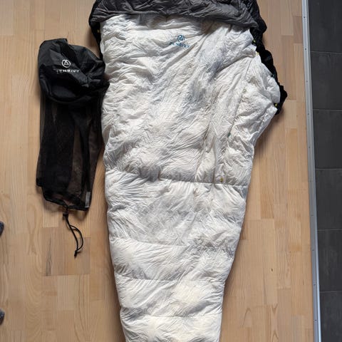 Rock Front 350 pro quilt med lagen. Comfort +2, vægt 735 g. Incl lagen og fastgjort hovedpudebetræk, som kan fyldes med hovedpude eller ekstra tøj.