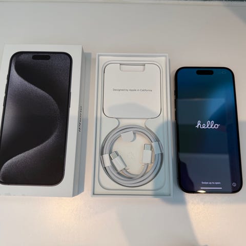 Sælger min kærestes Iphone 15 Pro 512 GB i farven Black Titanium.