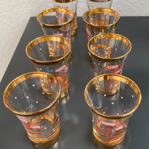 Glas, Forskellige glas med sleben prop., Schott, Mains Jena glas, 2 stk. Jena glas med sleben prop, som måler 12 cm i lågets kant til 50 kr/stk og et lidt mindre som måler 10 cm til kr. 40
