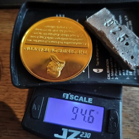 Hver enkelt mønt indeholder 25 gram ren sølv, og har en nettovægt på ~27 gram stykket, givet de er sterling sølv.