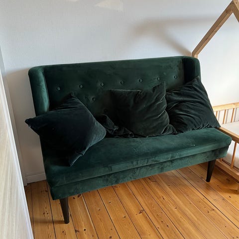 Sofaen er ikke skruet sammen på midten, så de to moduler kan skilles ad. Gavlen på chaiselongen er heller ikke fast monteret.