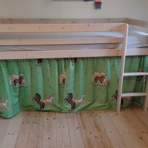 Børneseng med bord og mulighed for ekstra opredning inkl. god madras 90x200, som passer i overkøjen.