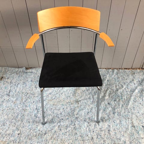 Sjældne, stilfulde, stabelbare armstole af forkromet stål, betrukket med Divina stof fra Kvadrat. Fremstillet hos Botium.