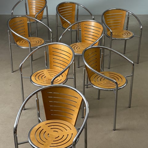 6 stk. Sjældne, stilfulde, stabelbare armstole