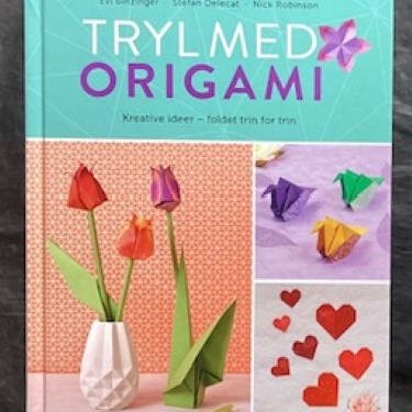 Tryl med Origami er en kreativ bog, der indeholder ideer og trin-for-trin vejledninger til origami, papirfoldning for børn. Bogen viser forskellige modeller som blomster, dyr og dekorative figurer, illustreret med billeder og instruktioner for nem læring.