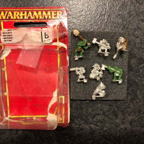 Games Workshop Warhammer Fantasy Goblin Spear Chukka komplet i metal. Fra 1990'erne