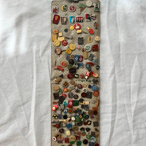 Gdansk emaljeret pin badge med rød og guldfarvet design. Passer til beklædning eller som samlerobjekt.