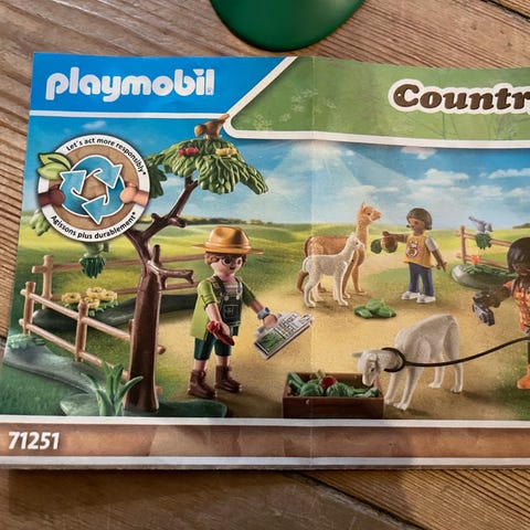 Playmobil, når det er bedst. Familie i alpedragter, tre alpekvæg med koklokker og udsmykning samt to bjerggeder