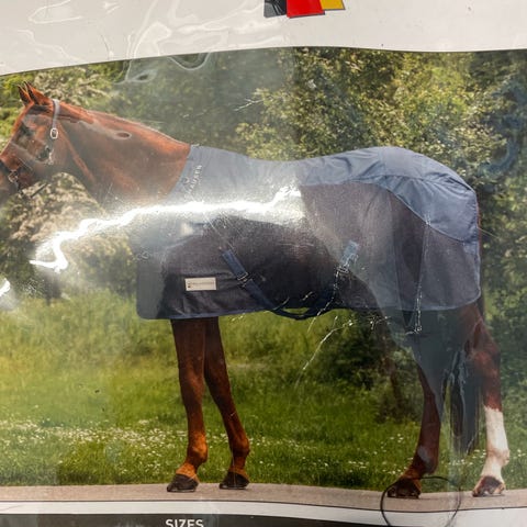 Waldhausen insekt- og regndækken med maveklap og regntæt ryg. Designet til at beskytte hesten mod regn og holde den tør under våde forhold.