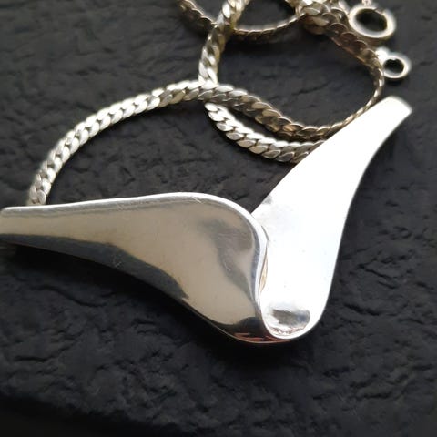Smuk og elegant vintage halskæde udført i Sterlingsølv med smukt integreret vedhæng udført i satineret Sterlingsølv med smukke blanke detaljer, kæden er leddelt og udført i et rillet design