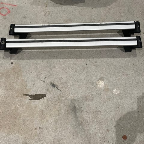 Sælges billigt da den ene røde låse anordning er knækket. (se sidste billede) Vi har brugt dem uden de sidste mange år, uden problemer, da selve kappen der låses med nøgle også sikrer at spændet der fastholder bøjlerne på bilens tagræling ikke kan springe op.