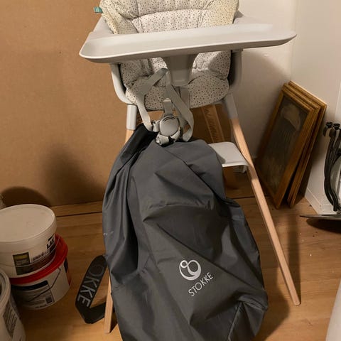 Stokke Clikk højstol designet til børn. Højstolen har en kompakt og funktionel konstruktion, der er egnet til daglig brug. Den er nem at samle og rengøre, hvilket gør den praktisk til måltider og aktiviteter for børn. I maget pænt stand