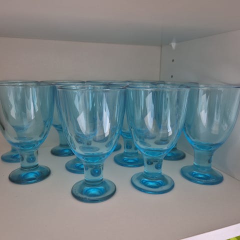 Iittala glas med farvet kant i forskellige farver. Glassene er lavet af klart glas med en farvet kant i blå, grøn, rød og gul. Velegnet til servering af drikkevarer.
