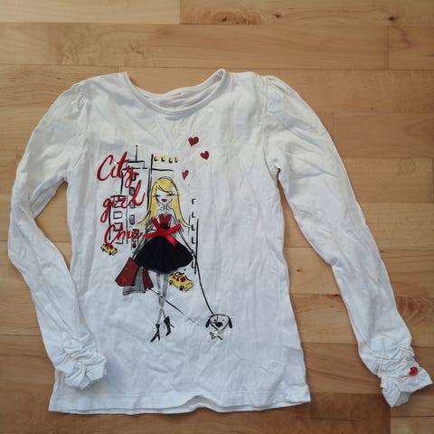 Dunnes børn bluse med stribet mønster i multifarvet design. Fremstillet i bomuld, størrelse 134 til piger. Blusen har lange ærmer og dekorative detaljer som knapper og applikationer.