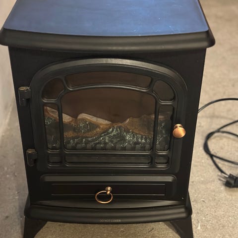 Elektrisk brændeovn der giver både varme og hygge. Varmeregulering på siden.