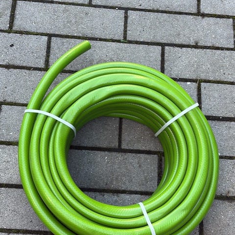 Gardena haveslange med vogn til oprulning af vandslange samt vippevander sælges.