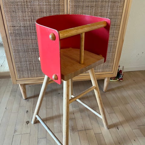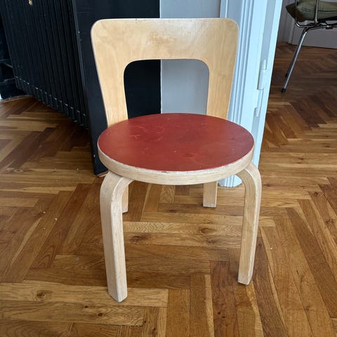 Ben af Schulten. Højstol af birk og hvidlakeret formspændt finer. Fremstillet af Artek, mærke herfra i bund. Model 616. Fremstår med brugsspår.