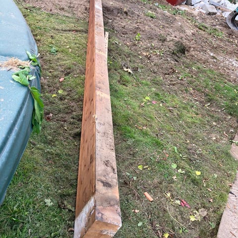 Stålbjælke i rødbrun farve med en længde på cirka 5 meter. Velegnet til konstruktions- og understøtningsformål.