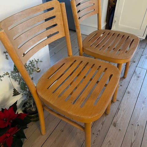 2 flotte spisebordsstole i træ fra IKEA. Stolene er i smuk bøg.