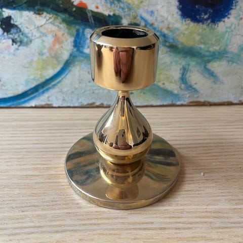 Fremstillet i messing og guldbelagt med 24 karat guld. I fin stand.