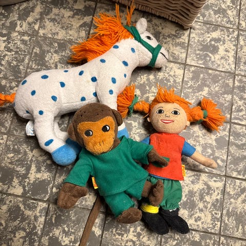 Pippi Langstrømpe Bamse med rød og hvid stribet trøje