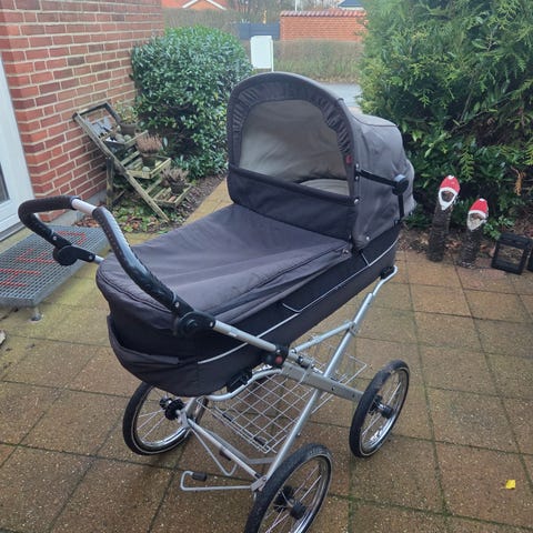 Sælger denne fine barnevogn fra Odder. Den har noget slid i stof som kan ses på billederne, men ikke noget voldsomt. Der medfølger madras samt et slist myggenet. Den har stået hos bedsteforældre.