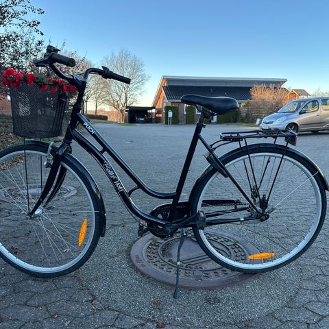 Rigtig pæn kvalitets alu cykel med 4 indvendige gear i dansk design. Cyklen har fået 2 nye punkterfrie dæk, ny godkendt Basta ringlås med 2 nøgler, ny fastmonteret kurv, ny kæde, ny sadel, nyt støtteben, nyt Shimano tandhjul, ny ringeklokke, ny slange, nu krank, nye kabler og nye reflekser. Derudover er der pæne for og baglygter, pæn Shimano (rullebremse) håndbremse, alu styr, alu fælge, gearskifter m.m. Håndbremse på forhjul og fodbremse på baghjul. Dækkene har en hård kerne, der gør at man næsten aldrig punkterer. Passer en person med højde på ca. 155 til 185 cm. Man sidder oprejst og der er lav indstigning. Cyklen har få brugsspor og virker perfekt. Gearene virker selvfølgelig også, som de skal. Fast pris. Mobilepay haves.