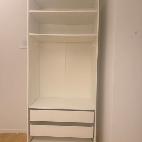 Skabet er skilt ad men i god stand. Inkl garderobestang.