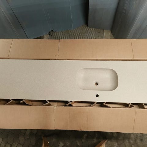 Har flere forskellige bordplader med vaske, understel og bordplader