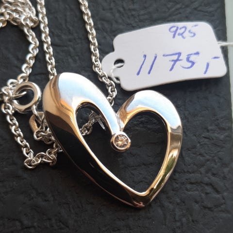 Smuk, feminin, kraftig og elegant halskæde fra Randers Sølv udført i Sterlingsølv med vedhæng med motiv af et hjerte.
