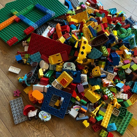 Legoklodser i tusindvis inklusiv mange byggeplader