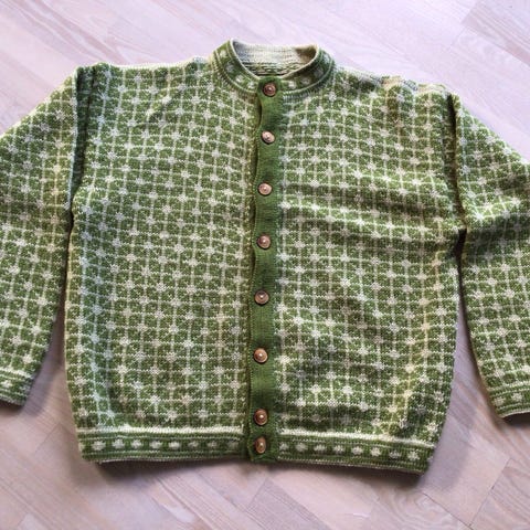 Lækker hjemmestrikket sweater i dejlige anvendelige farver. Er strikket af familiemedlem, men er desværre bare havnet nederst i skuffen. Tænker en anden kan få glæde af den i stedet. Brug den på skiferien, på de kolde dage i sommerhuset mm.