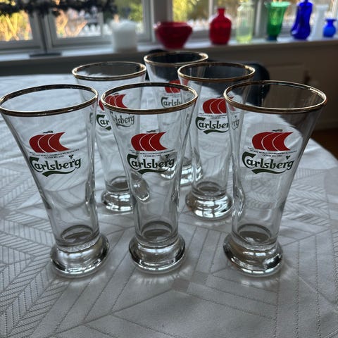 Carlsberg ølglas sæt bestående af 5 glas med intakt guldkant -