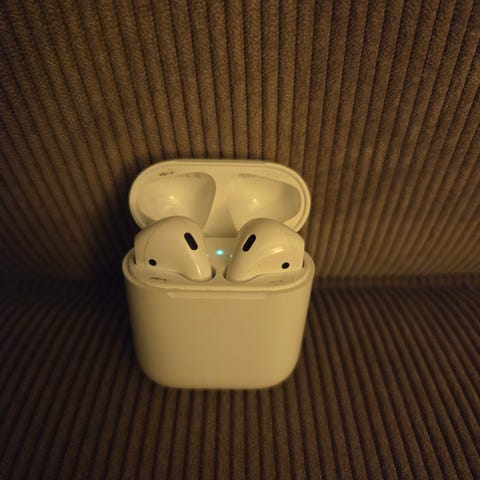 Original Apple hovedtelefoner med Lightning-stik i hvid farve. Designet til brug med kompatible fra iPhone 7 til iPhone 14 Pro Max .. Leveres i original opbevaringsæske.