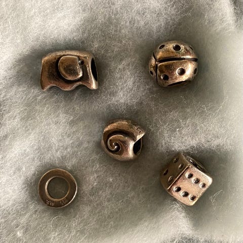Charms 75 kr. pr. stk. uden fragt (frø, skildpadde, ugle, giraf, mariehøne, bamsehoved)