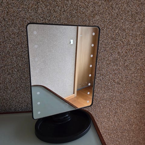 Hollywood Mirror Make Up Spejl med 6 LED-lys, sort farve. Spejlet har en USB-forbindelse til strømforsyning og er velegnet til make-up påføring og personlig pleje.