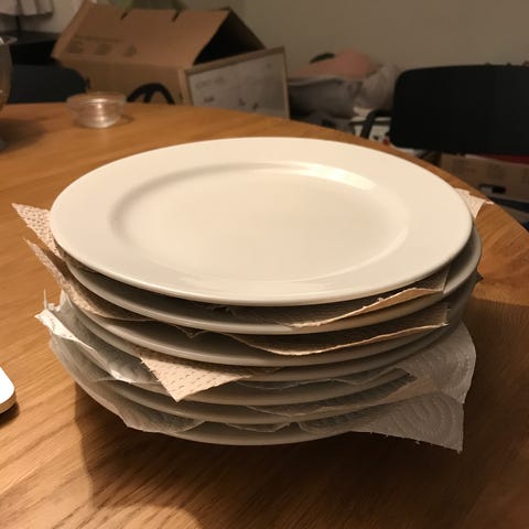 6 fine frokosttallerkner i en støvet lilla farve. Måler 19.5 cm i diameter.