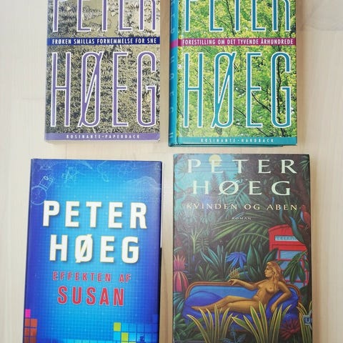 Peter Høeg bog med titlen De Måske Egne Ø. Bogens omslag har et flammemotiv og teksten er trykt i store bogstaver.