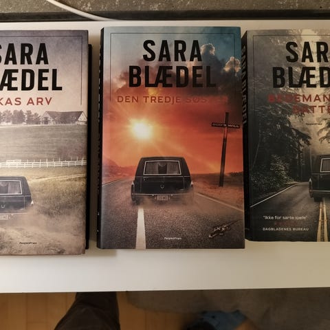 Sara Blædel Grønt Støv bog. Roman af Sara Blædel, skrevet på dansk. Bogens omslag er sort med hvid tekst.