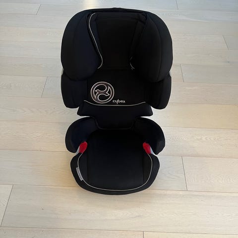Cybex autostol i grå farve. Designet til børn og har justerbare funktioner for komfort og sikkerhed under biltransport.