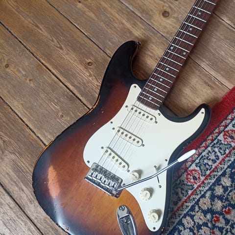 Et projekt jeg har arvet, som jeg aldrig selv får gjort noget ved. Umiddelbart er tanken vist en super strat med Floyd Rose og forskellige humbucker installeret (jeg har også nogle af dem til salg, så.sig til og vi finder på en god pris).